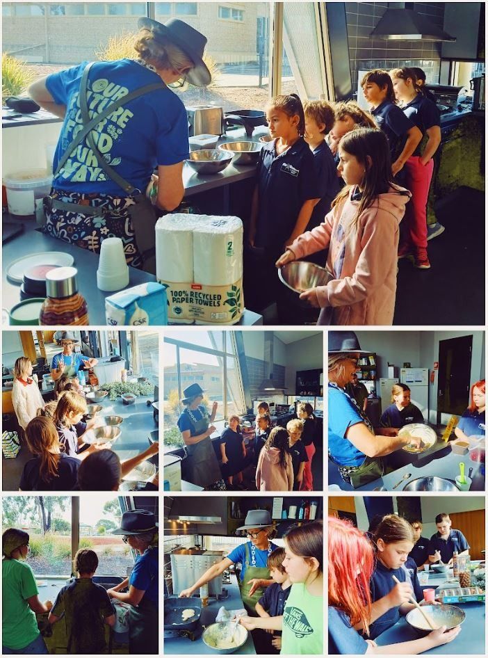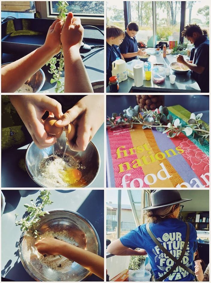 I have been fortunate to be able to cook with the Murray students, based in Stawell. I did two cooking classes: one for high school students and one for primary students. The high school students came to Dimboola where we ventured to the Dalki Garringa Nursery.